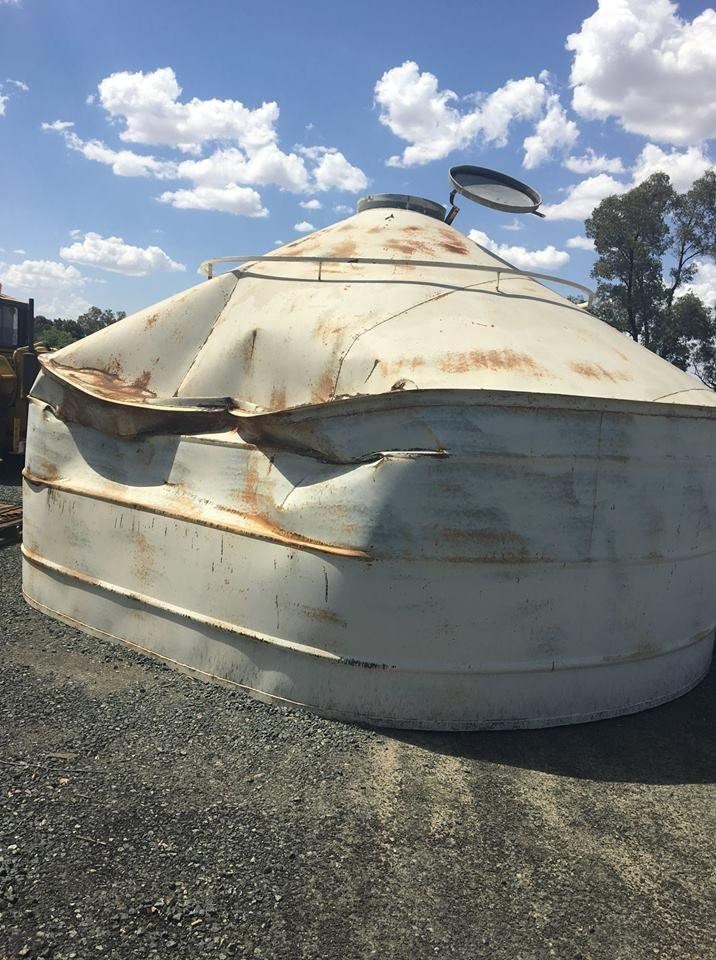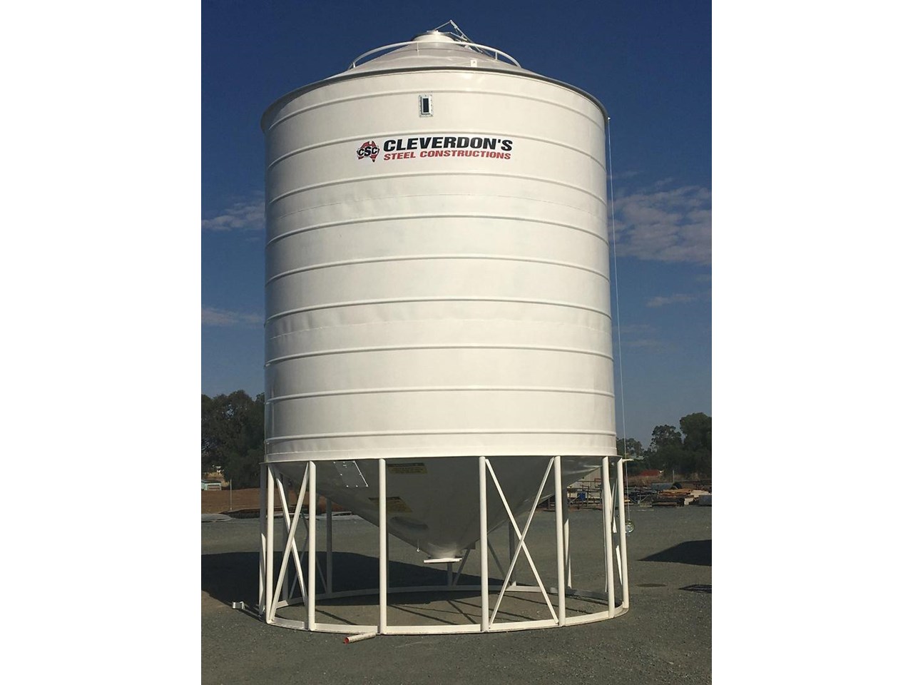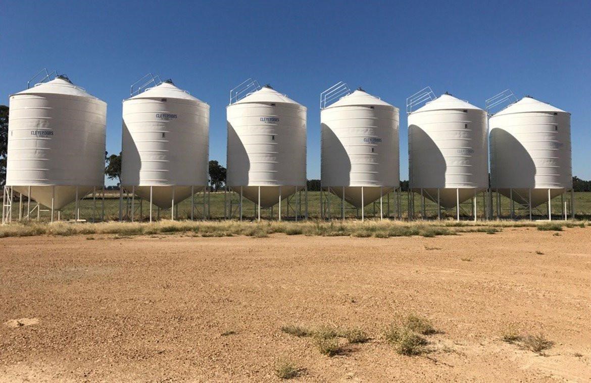 The silos come in many different sizes starting at 16m3 perfect for seed silos or the hobby farmer wanting to feed a small number of livestock, and up to 137m3 for serious grain storage, so you can be sure that there is a silo available to suit your needs. Ask us about linking multiple silos together with an overhead platform design. Also available are field bins perfect for easy and temporary grain storage at harvest time. A large capacity of 35 tonnes, with a 13 outloading auger and hydraulic wheel lift. At Cleverdons, silo safety is paramount and all our silos and the optional extras comply with Australia Safety Standards. At Cleverdon's we don't just make new silos, we repair older and damaged silos. This silo suffered some damage in a storm at harvest time and has had a make over done, we replaced the damaged roof and wall sheet and with a fresh coat of paint and this silo looks brand new again. We have new and used silos in stock, Please call Steph for a quote.