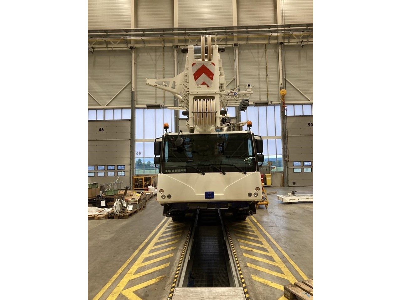 Additional Accessories: box for support timber, immobilizer, rear view camera at carrier rear, lighting package superstructure: two working floodlights at pivot section (electrically adjustable) and floodlights at the turntable (2 x laterally and 2 x rear), support for double lattice-type swing-away jib.